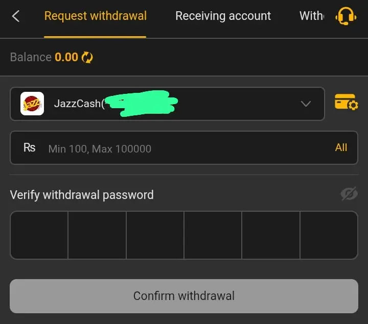- Go to the withdrawal section